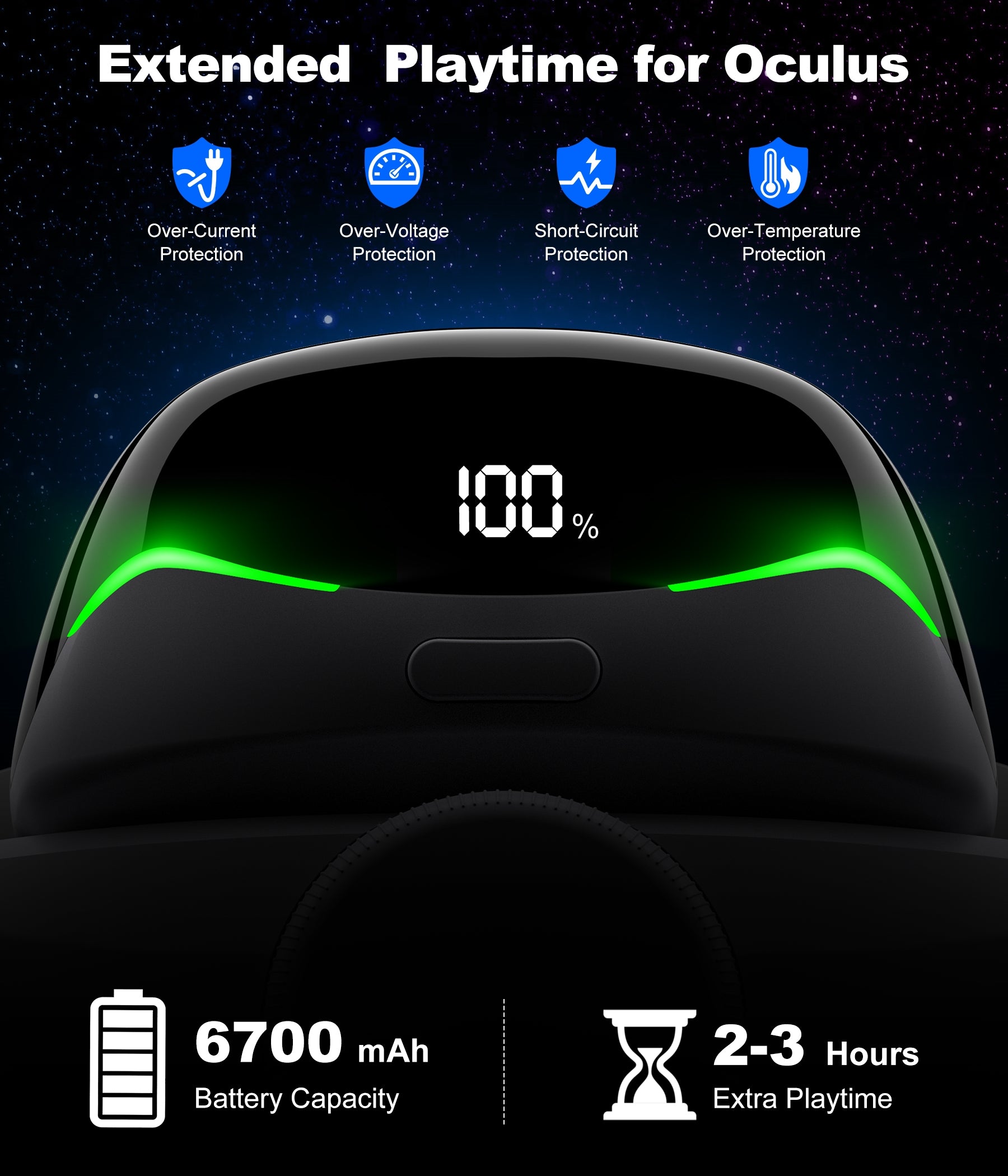 Ergonomic Design for Maximum Comfort:Our battery pack does more than provide power—it’s engineered to enhance your comfort. By balancing the weight of the headset evenly between the front and rear, it significantly reduces facial pressure, making marathon gaming sessions more enjoyable and fatigue-free.
